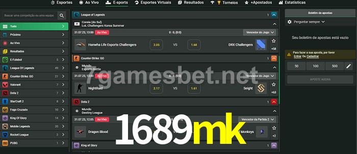 O 1689mk oferece uma grande seleção de opções de apostas em e-sports com probabilidades competitivas